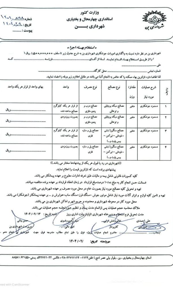 واگذاری امور جوشکاری شهرداریAdmin9 اردیبهشت 1404بسم الله الرحمن الرحیم ️شهرداری بن در نظر دارد نسبت به واگذاری امور ... ادامه مطلب