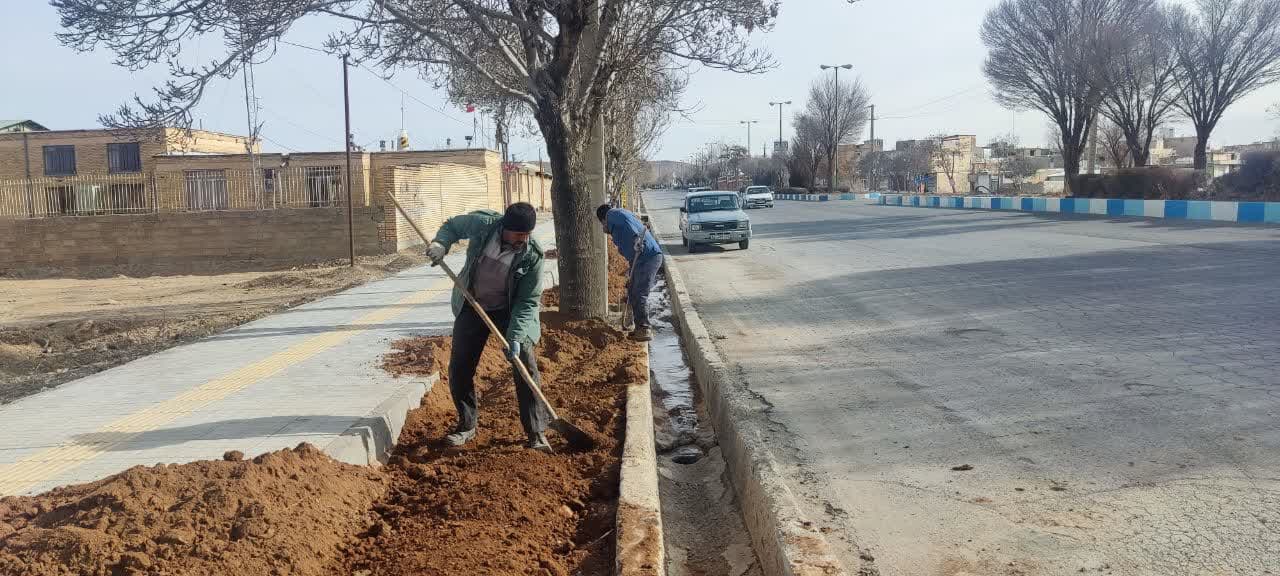 تسطیح و آماده سازی بلوار های ورودی شهر جهت کاشت گل با توجه به فرا رسیدن ایام پایانی سال و آغاز سال نو