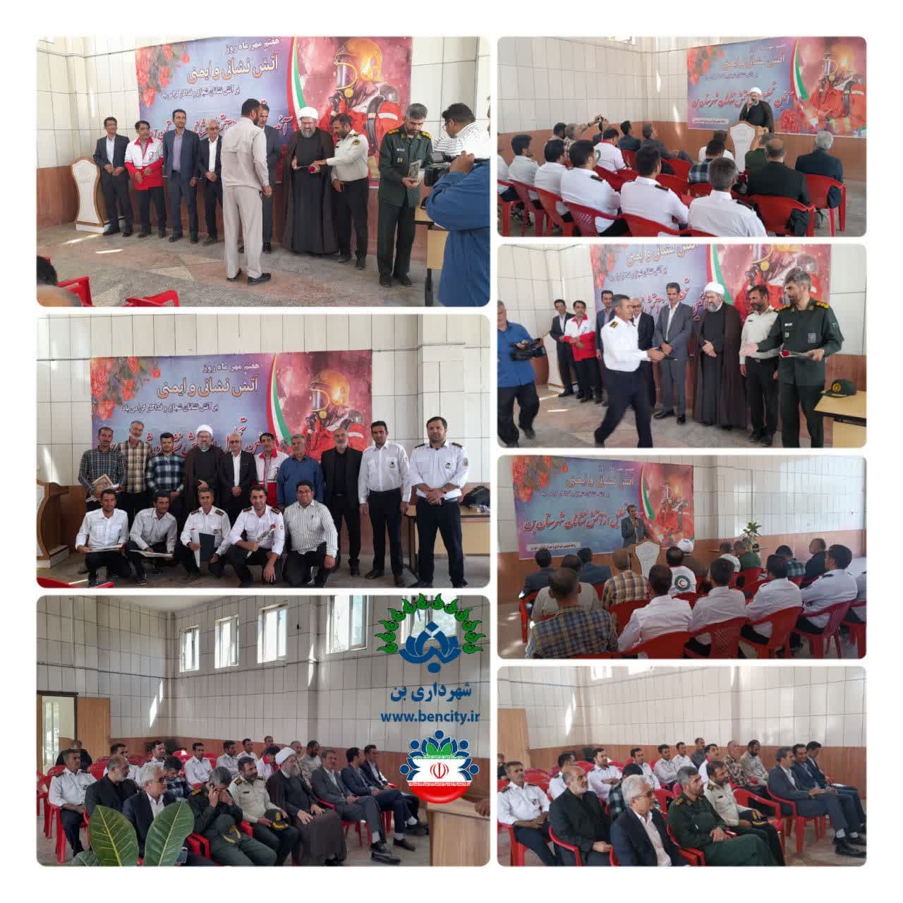 به مناسبت 7 مهرماه روز ملی آتش نشانی و خدمات ایمنی مراسم گرامیداشتی با حضور مسئولین ادارات شهرستانی و آتش نشانان در محل ایستگاه آتش نشانی شهرداری بن برگزار شد.